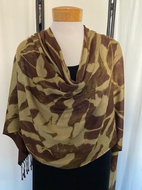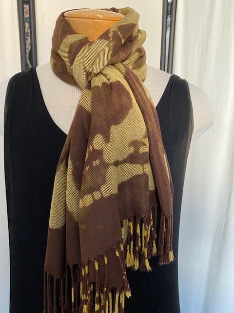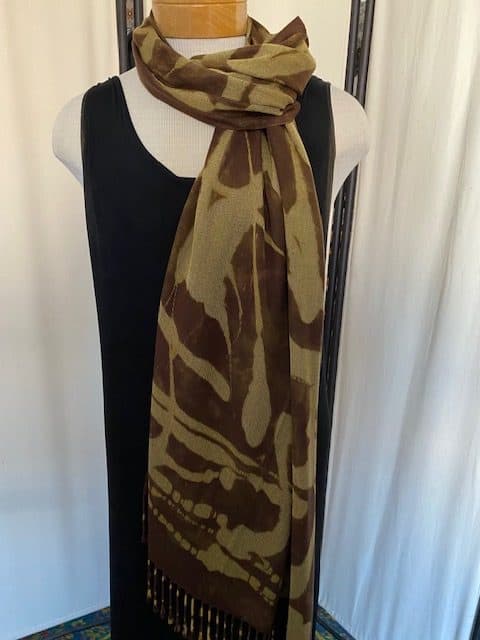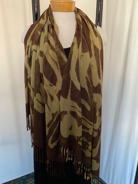 I have become slightly obsessed with my new line of reverse-color abstract scarves. I whip up a solution that removes the color wherever I splash, or paint it.