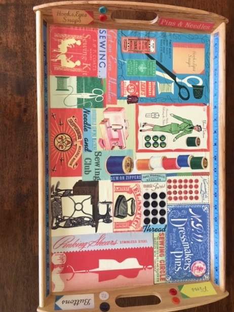You are here: Home / Home Decor / Collaged Sewing Tray