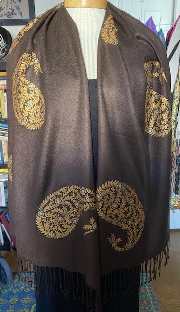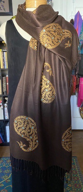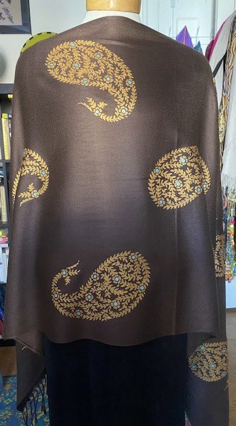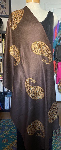 You are here: Home / Pashmina Wraps / Jaipur Gold Paisley on a Brown Pashmina