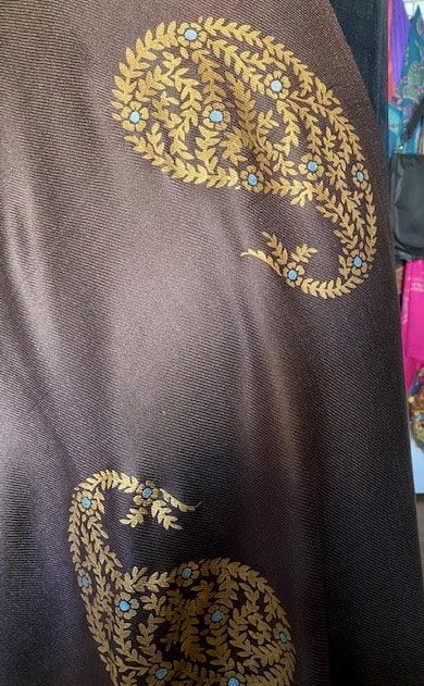 Jaipur Gold Paisley on a Brown Pashmina