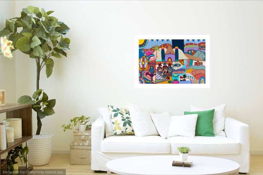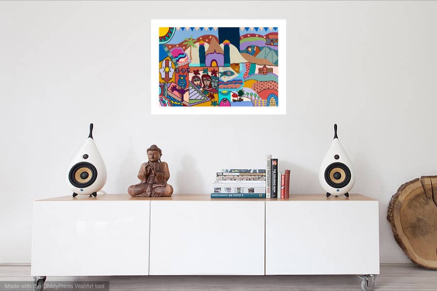 Make any room stand out with this  colorful, bright and imaginative print.