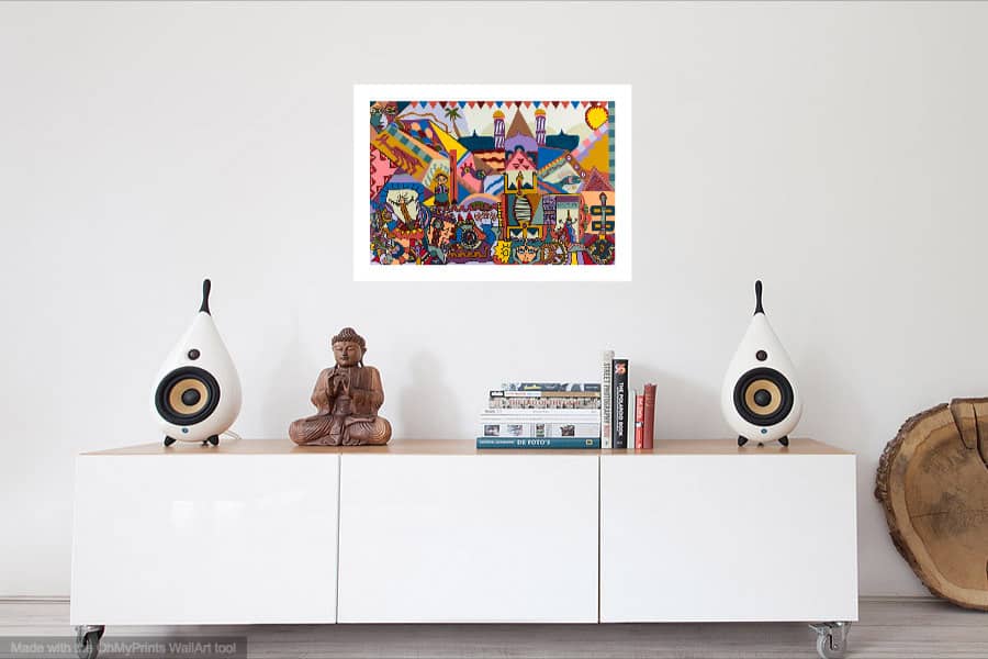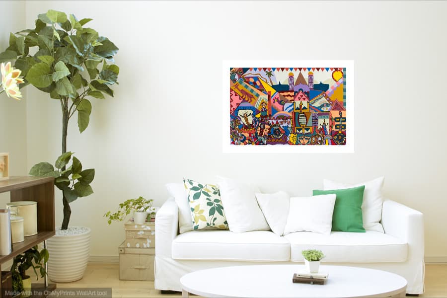 Make any room stand out with this colorful, bright and imaginative print.