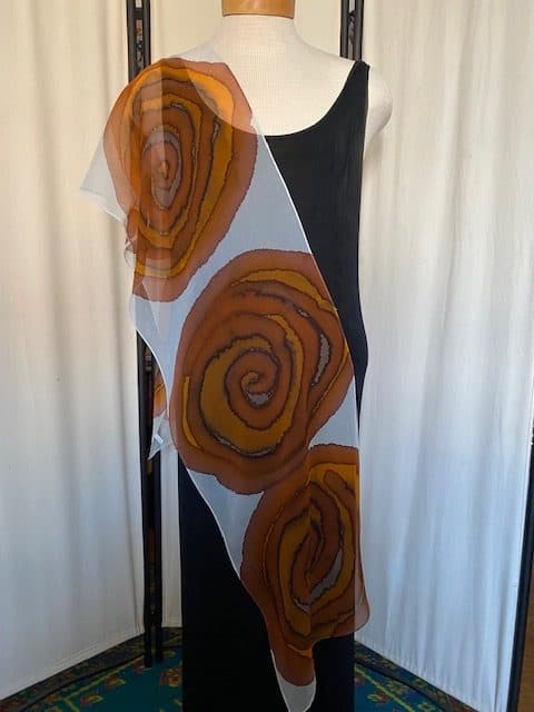 You are here: Home / Silk Scarves / Longer Chiffon Apricot Swirls Silk Scarf