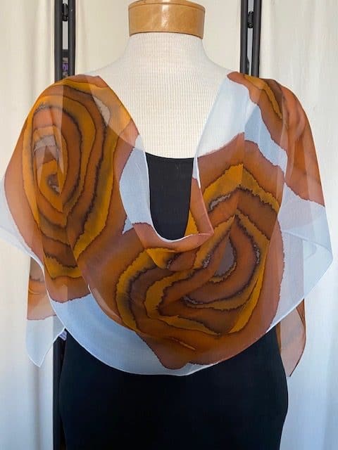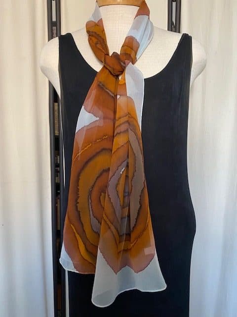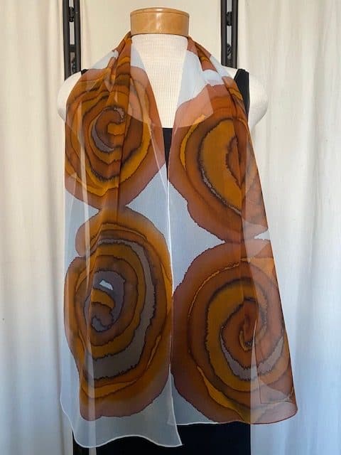 Category: Silk Scarves Tags: brown, burnt orange, chiffon, chiffon silk, handpainted silk scarf, orange, siik, silk scarf