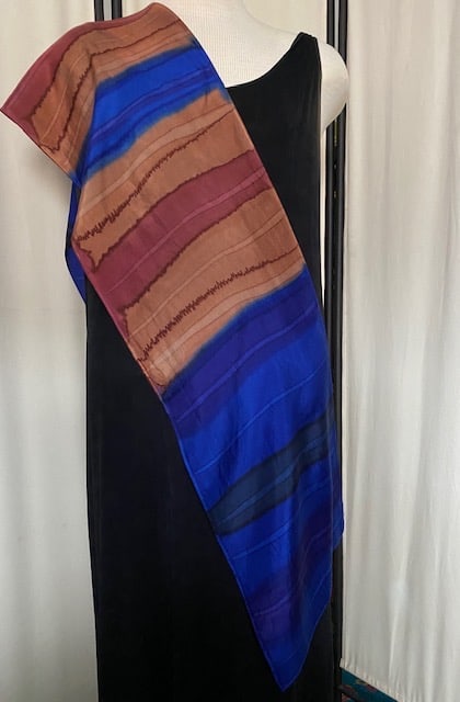 You are here: Home / Silk Scarves / Rust and Blue Silk Scarf