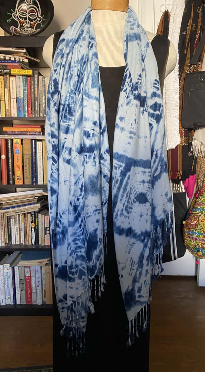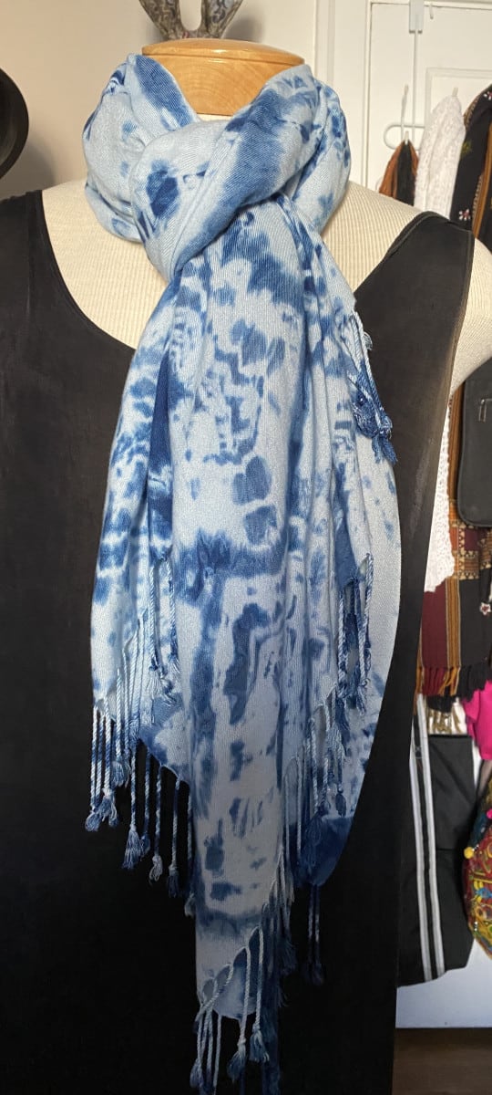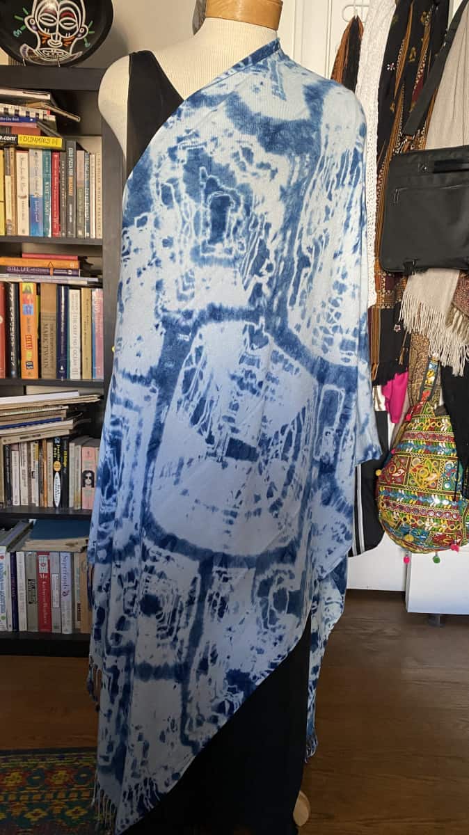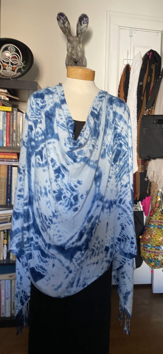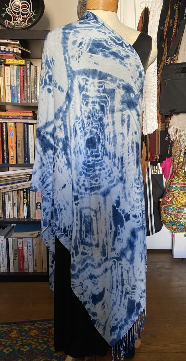 Categories: Pashmina Wraps, Shibori Scarves Tags: blue, handpainted shawl, indigo, infinity scarf, rayon scarf, scarf, shibori, wrap